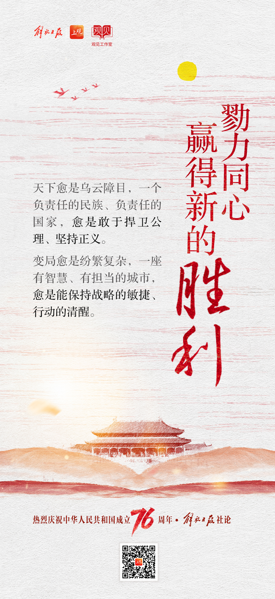 这是一个充满欢欣的日子,更是一个充满感怀的时点。不到一个月前,共和国刚刚以庄重而热烈的方式纪念中国人民抗日战争暨世界反法西斯战争胜利80周年。“胜利日”的号角至今仍在回响,而每一次回望历史,都是在启示未来。